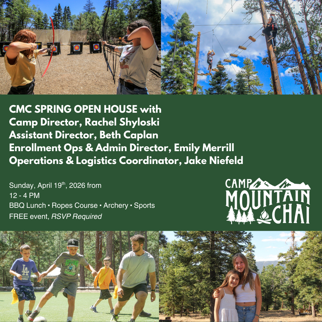 Our Open House is a wonderful opportunity to introduce your future camper to the magic of CMC . The day will be filled with activities, an outdoor barbecue lunch, tours of the property and time to meet some of our counselors and staff. Test your aim at the archery range, see our camp from new heights on the ropes course, and create something special to take home from arts and crafts. Our staff cannot wait to share their love of Camp Mountain Chai with you and your family. Whether you are considering Jewish summer camp for the first time or have been a member of the CMC community in summers past, we look forward to seeing you there!